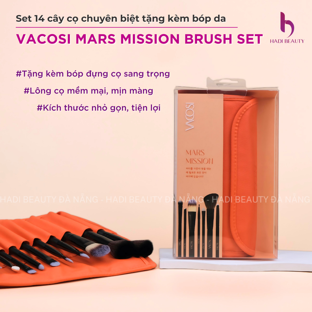 Bộ Cọ Vacosi Mars Mission Brush Set 14 Cây Tặng Kèm Bóp Da Cam