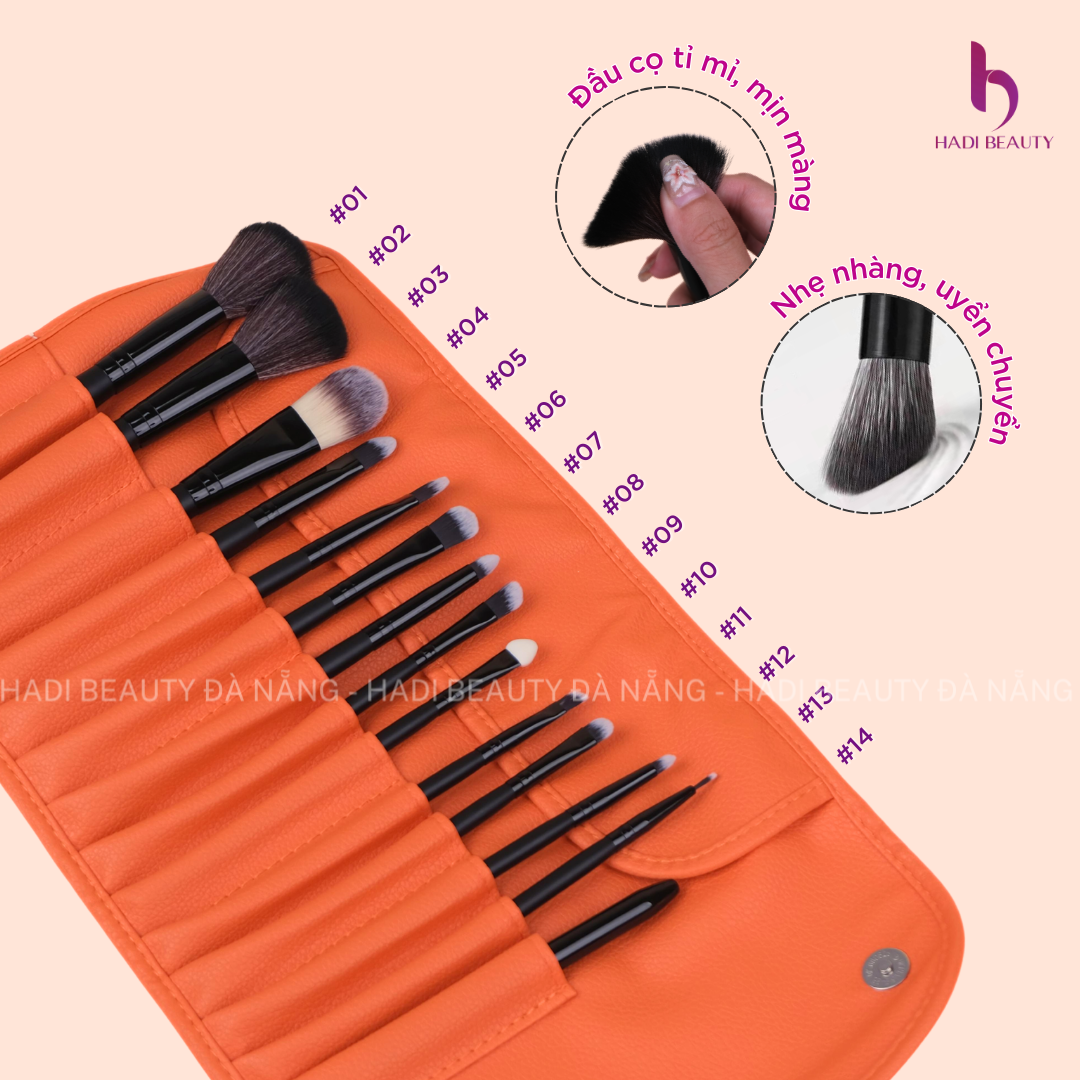 - 14 cọ với 14 công dụng khác nhau, HADI note thứ tự cho các nàng dễ sử dụng:#01: Powder/Blush: cọ phủ phấn/má hồng