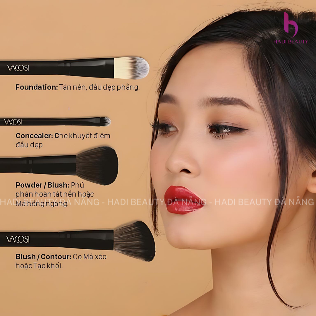 Dưới đây là thông tin chi tiết và công dụng của từng cọ, các nàng cũng có thể sử dụng linh hoạt được nè