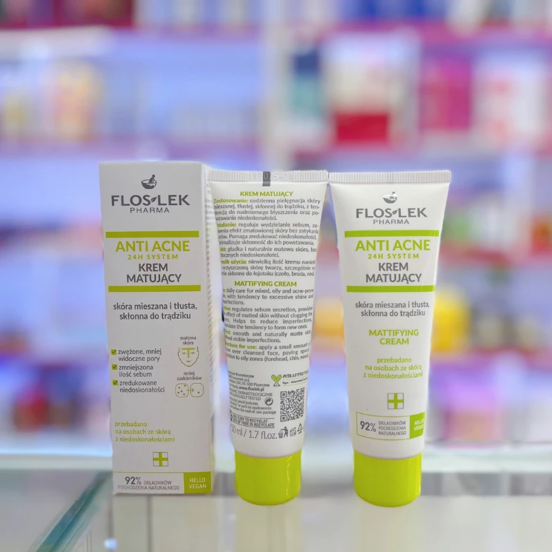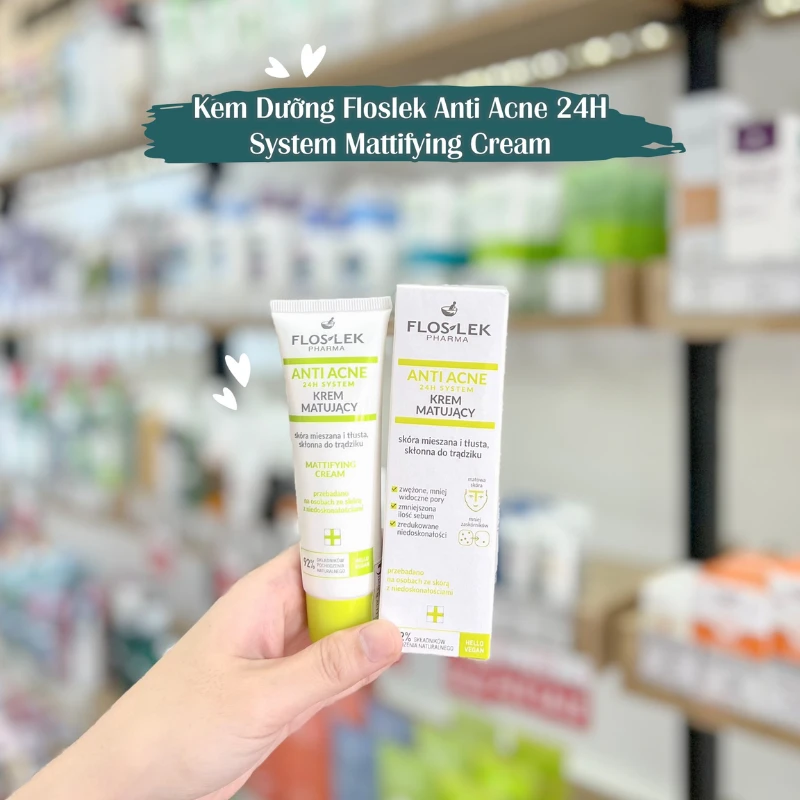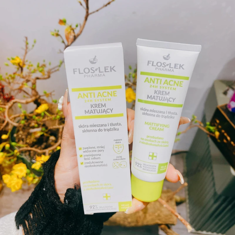 - Kem Ngăn Ngừa Mụn Kiểm Soát Dầu & Điều Tiết Nhờn Floslek Pharma Mattifying Cream 50ml thuộc dòng sản phẩm ngừa mụn Anti Acne của thương hiệu Floslek.