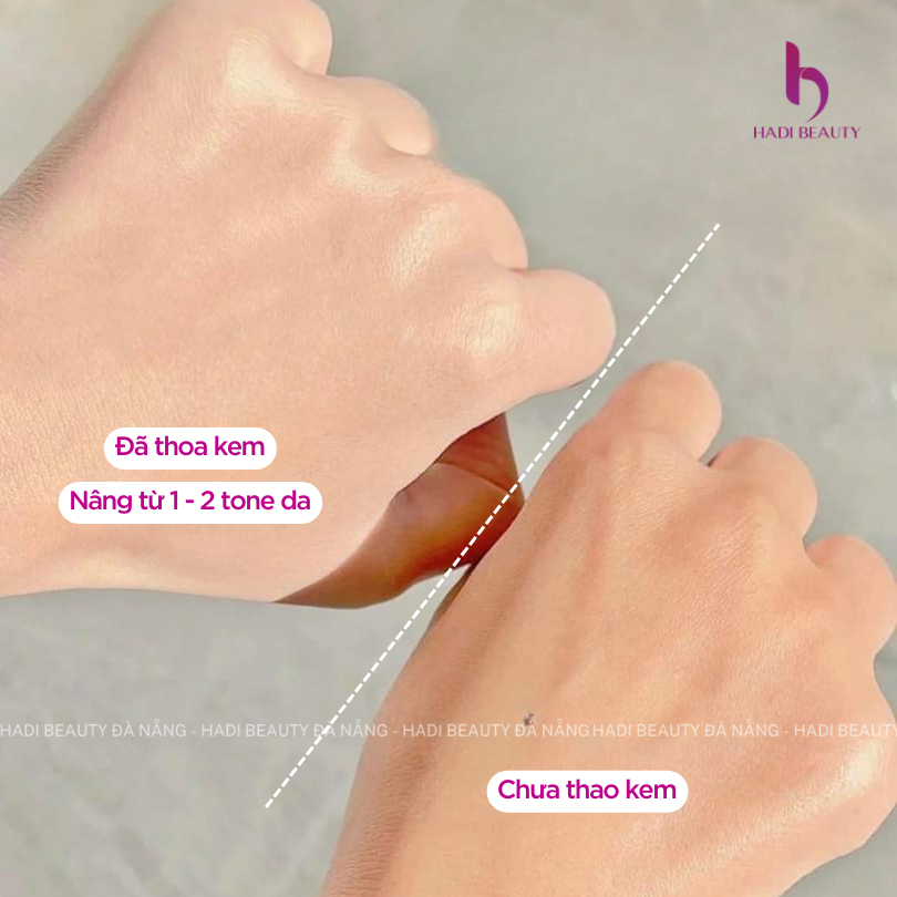 Chất kem mềm mịn, có nhũ hồng nhẹ, ngay khi apply thẩm thấu nhanh vào da, bật tone ngay tức thì và hoàn toàn không để lộ vân kem.