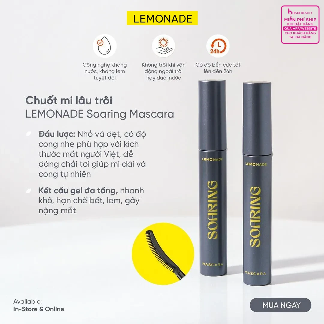 Các dòng sản phẩm làm đẹp của Lemonade đã đang và luôn gây ấn tượng và tạo nên nhiều tiếng vang từ thiết kế đến chất lượng; và BST mới đây "Lemonade Soaring Mascara Collection" - là một sản phẩm dành cho các tín đồ làm đẹp bận rộn, giúp đôi mi tơi cong suốt ngày dài.