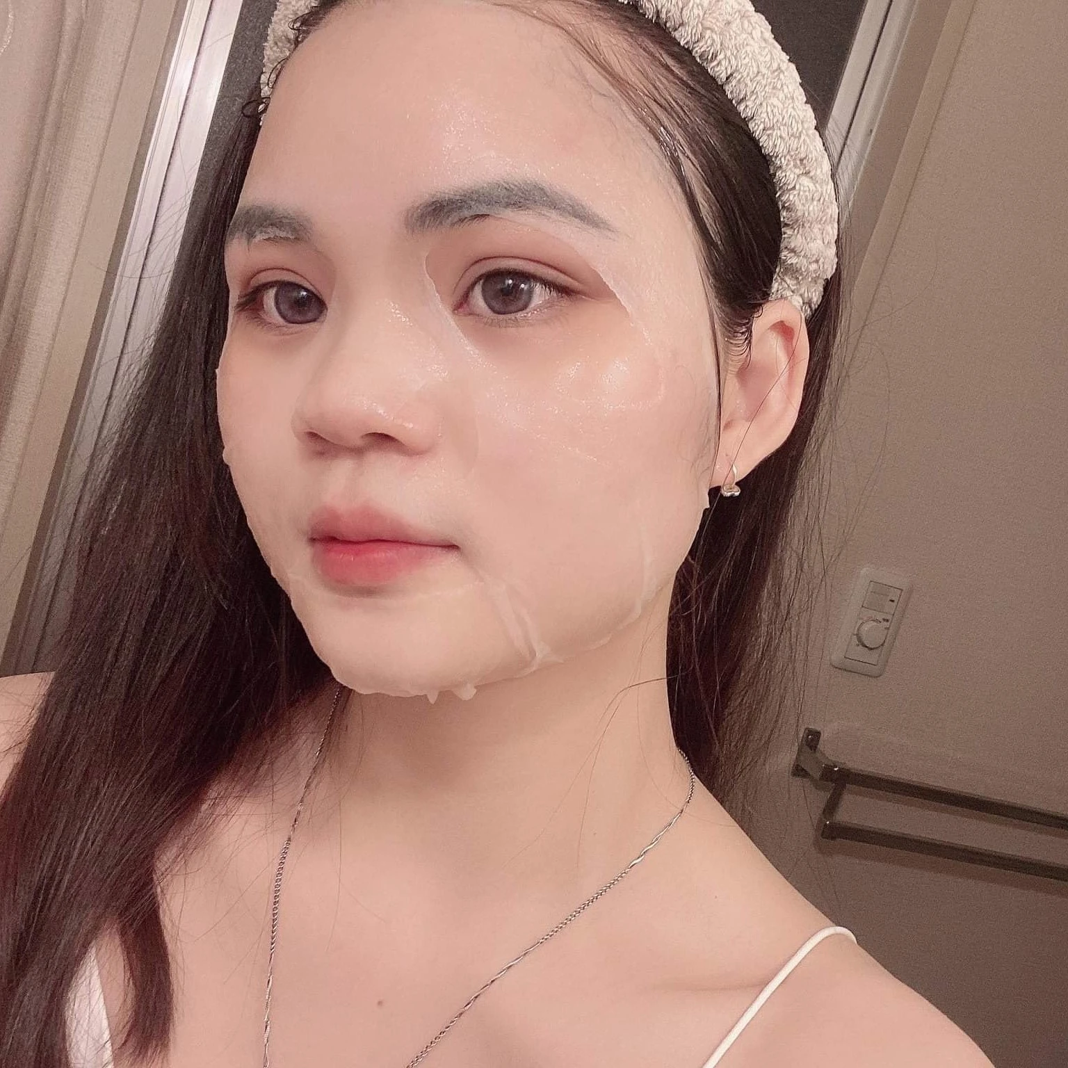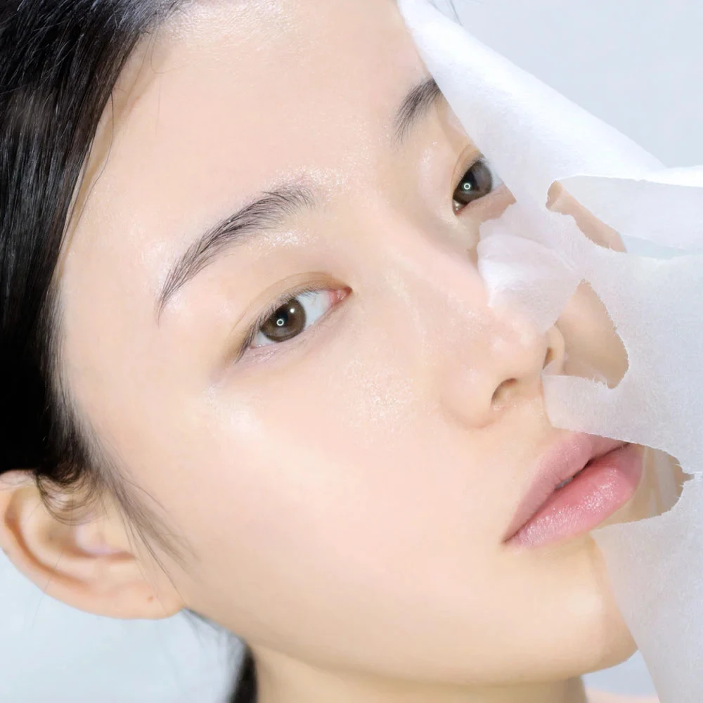 - Lấy mặt nạ ra khỏi túi và đắp lên mặt, nhẹ nhàng miết để mặt nạ áp sát vào da.