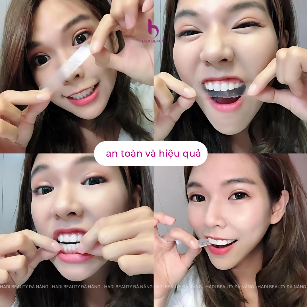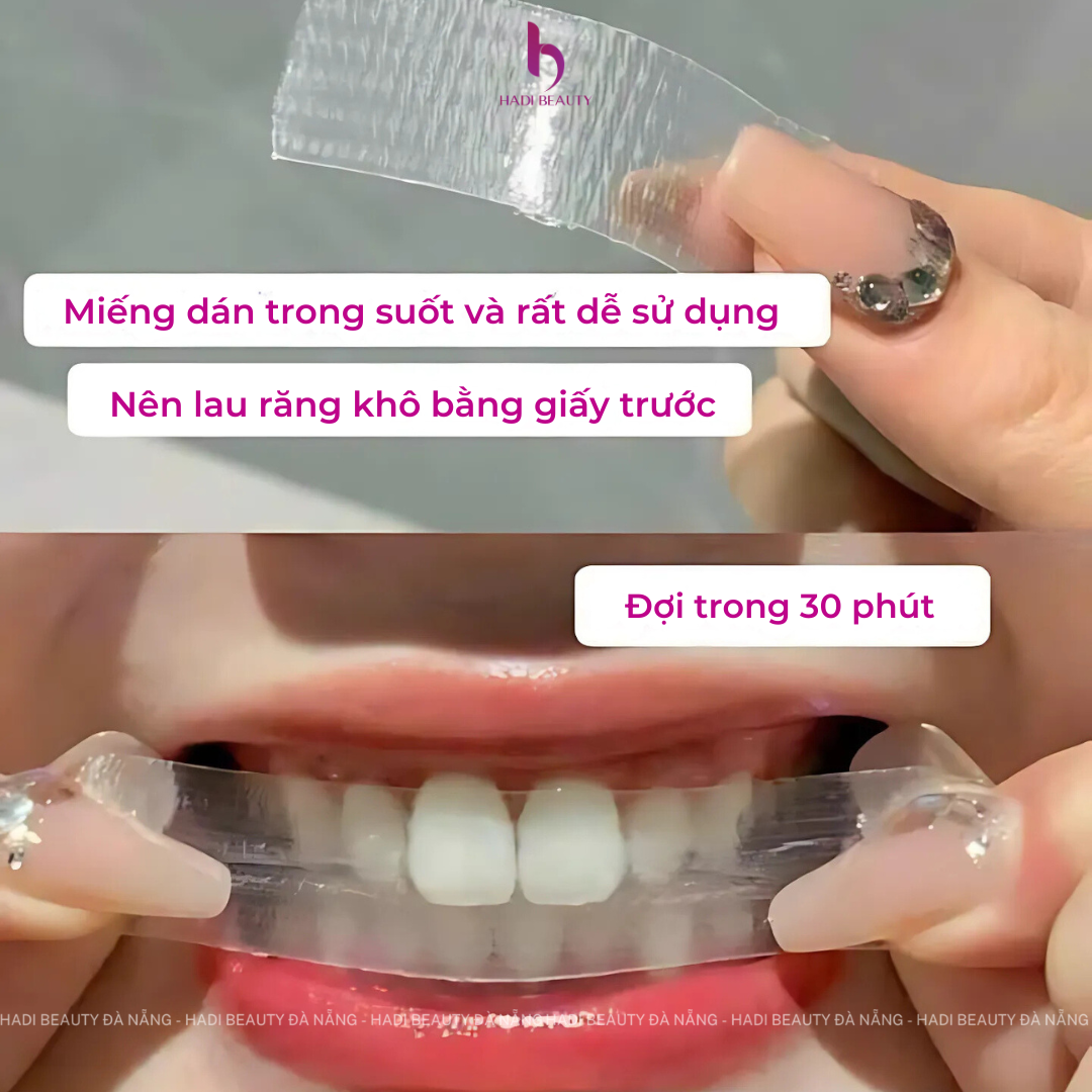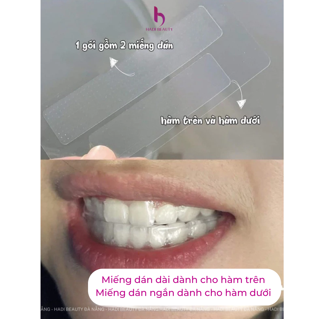 - Dán lên răng: Đặt miếng dán lên răng và nhấn nhẹ để dính chặt.