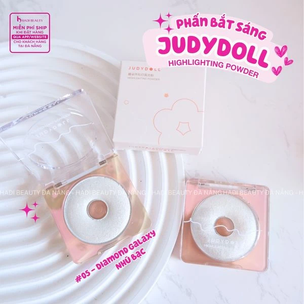 Highlight Judy Doll đỉnh cao của sự lấp lánh không thể không nhắc tới. Hộp highlight sang chảnh, tạo hiệu ứng glowy có ánh nhũ trong suốt đẹp mê mẩn.
