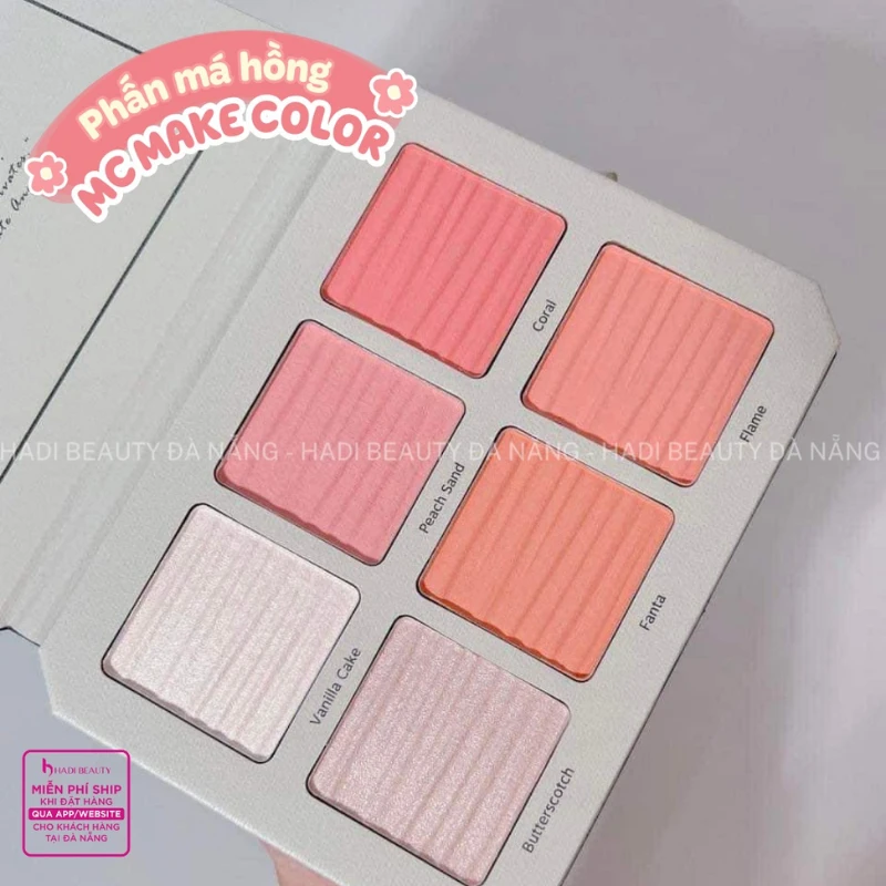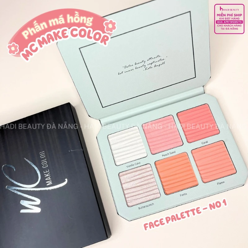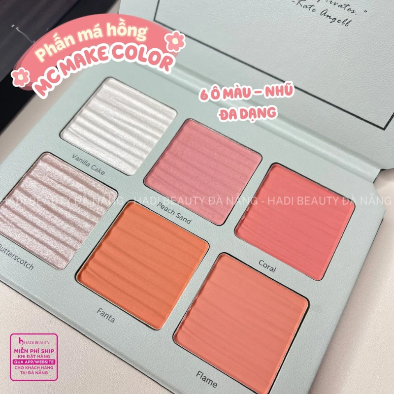 Bảng phấn má hồng MC Make Color 6 ô màu matte - 2 ô nhũ highlight tiện lợi. Để mà nói, ở thời điểm hiện tại thì rất khó có em nào có thể sánh vai được bằng em này trong tầm giá cũng như chất lượng.