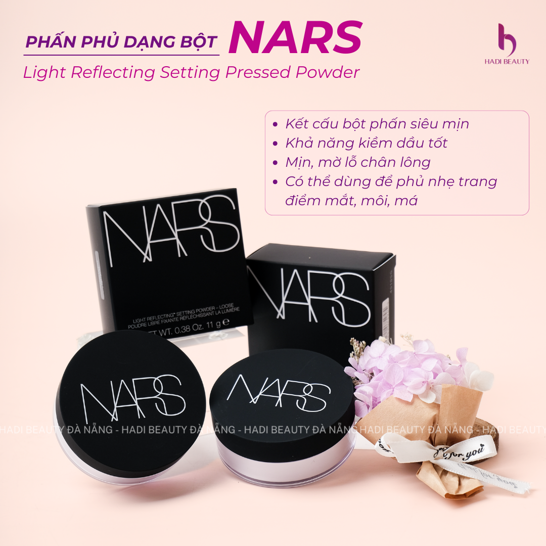 Phấn Phủ Nars Light Reflecting Setting Loose Powder là phấn phủ bột có khả năng giữ lớp trang điểm không trôi cả ngày, thấm hút dầu thừa tốt và còn làm mờ các nếp nhăn trên khuôn mặt.