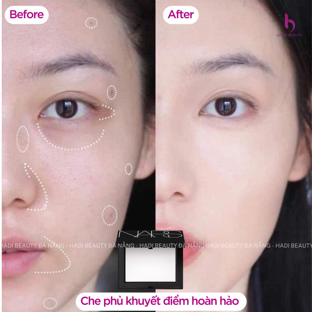 Hạt phấn chứa khoáng chất cực mịn chứa Glycerin và thành phần Vitamin E chống ôxy hóa bảo vệ ngăn da khô và giữ cho da dễ chịu suốt cả ngày. Phức hợp Phản chiếu ánh sáng™ của NARS giúp phục hồi vẻ rạng ngời tươi trẻ cho da