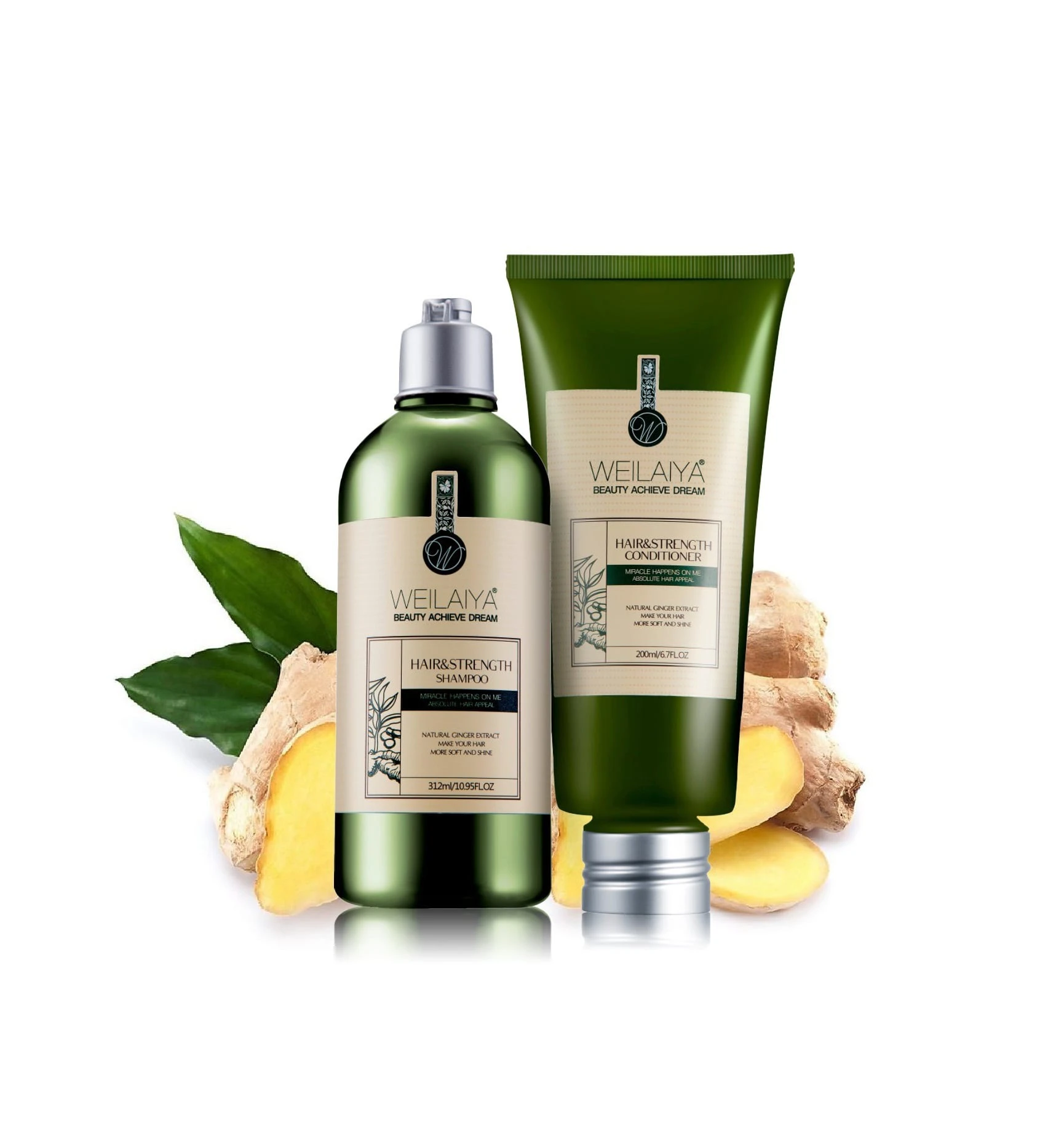 Bộ Dầu Gội Xả Gừng Weilaiya được chiết xuất từ nước gừng tươi và dầu hạt trà ép hoàn toàn không chứa silicon hoạt động theo cơ chế kích thích da đầu, làm tăng lượng máu lưu thông đến chân tóc, ngăn ngừa rụng tóc, giúp tóc mọc nhanh và dày khỏe hơn. Gừng có tính cay ấm nên khi sử dụng bộ gội xả Weilaiya sẽ giúp kích thích các tế bào da đầu hoạt động, trị gàu, kiềm dầu hiệu quả. Sản phẩm là thương hiệu nổi tiếng Weilaiya đến từ Hong Kong.