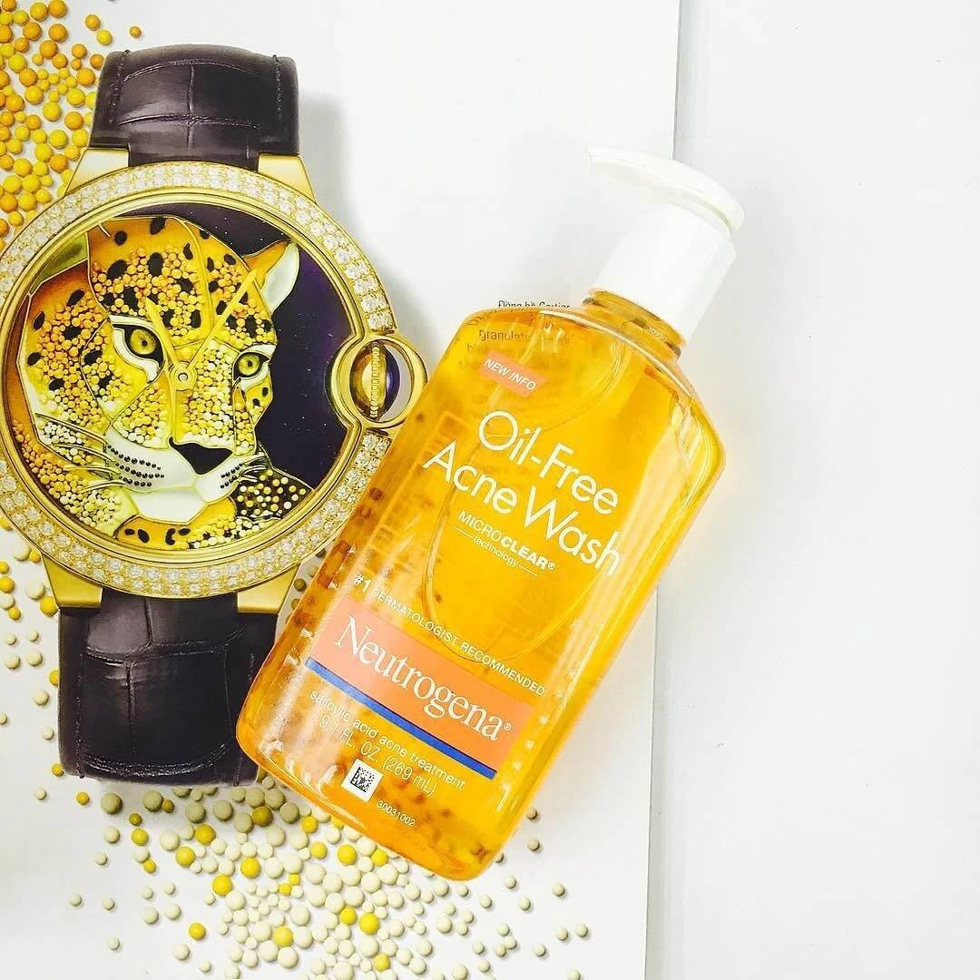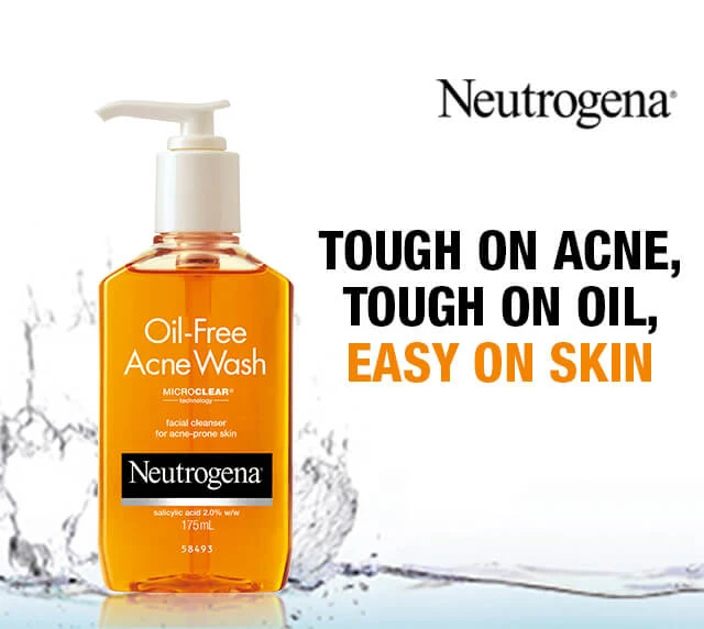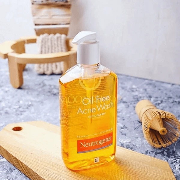 Đầu tiên là với công thức KHÔNG CHỨA DẦU (oil-free) giúp làm sạch tận lỗ chân lông. Sữa rửa mặt dạng gel Neutrogena Oil-Free Acne Wash chứa 2% axit salicylic (BHA). Chính là một thành phần ngăn ngừa mụn cực kỳ hiệu quả. V