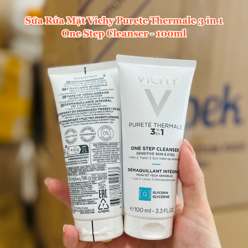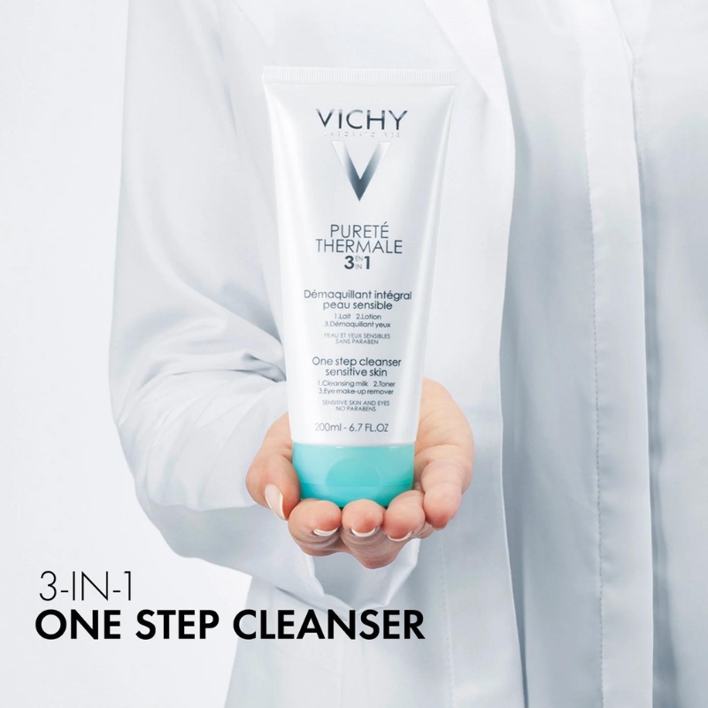 - Sữa Rửa Mặt Vichy Purete Thermale 3 in 1 One Step Cleanser mang đến 3 công dụng với khả năng tẩy trang sạch mọi lớp trang điểm, bụi bặm - sữa rửa mặt dịu da và không hề làm khô da. Làn da bạn sẽ trở nên tươi mới, mát rượi và không còn lo lắng bụi bẩn còn ẩn chứa đâu đó trên làn da.