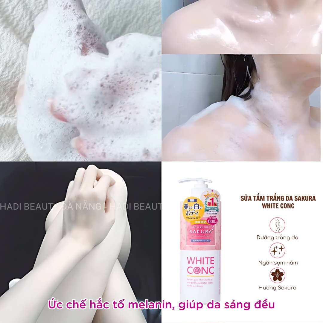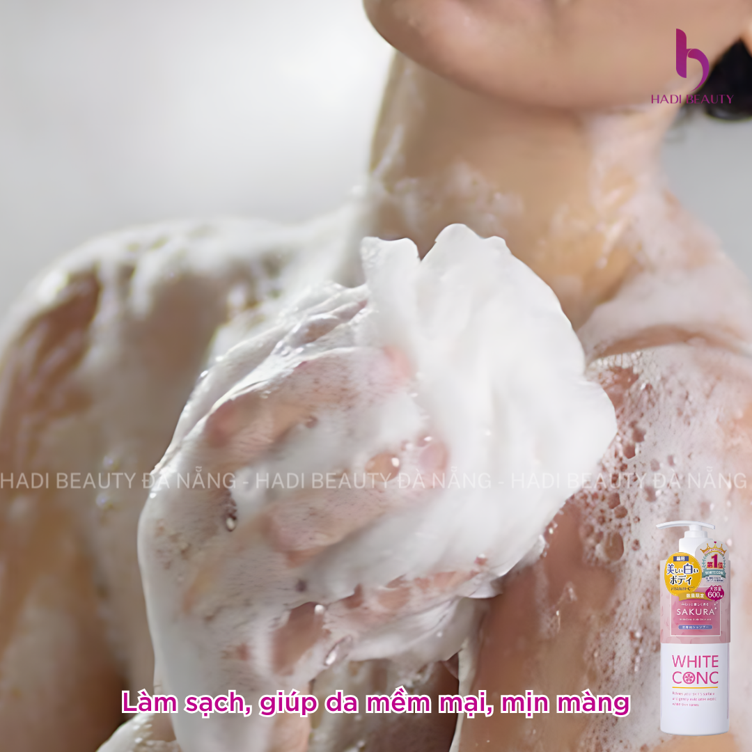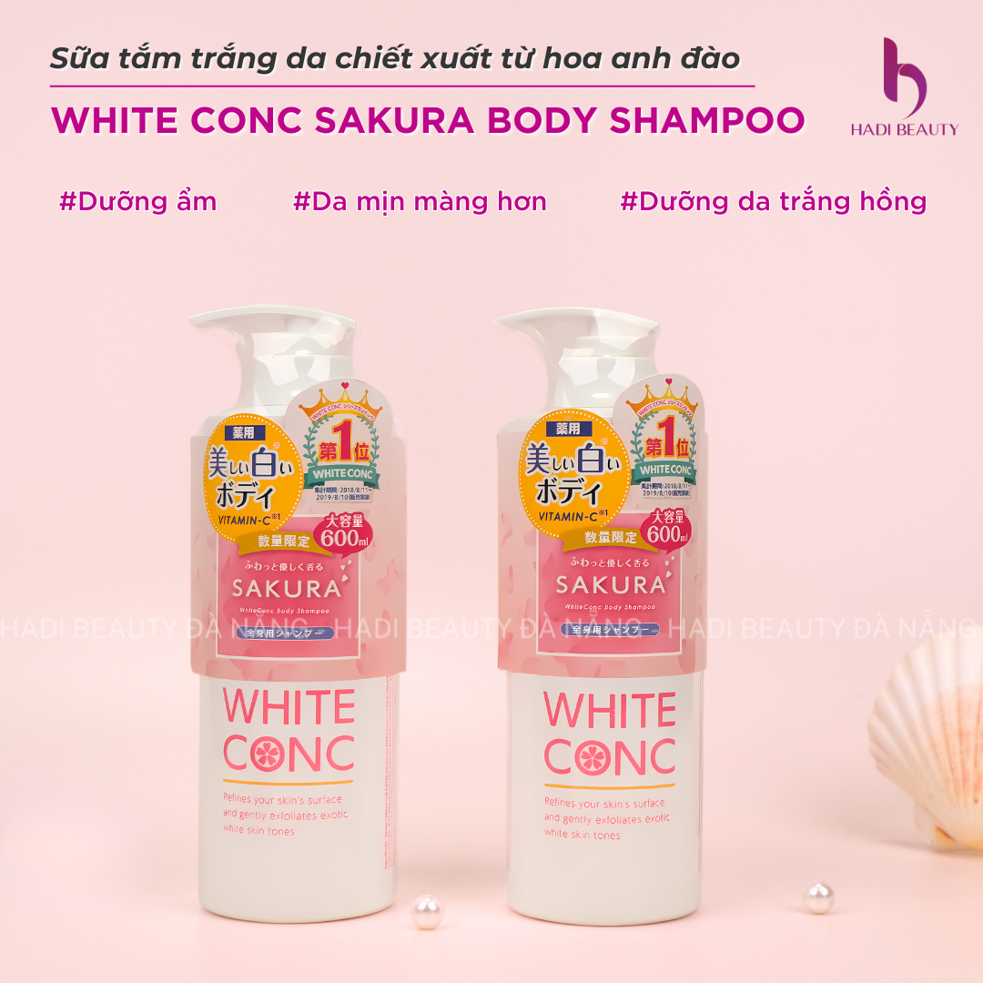 Sữa tắm trắng da, mờ thâm sạm White Conc Sakura phiên bản mới hương hoa anh đào chuyên dưỡng trắng, cấp ẩm, làm mờ các khuyết điểm, thâm sạm trên da giúp da luôn tươi trẻ, trắng hồng rạng rỡ.