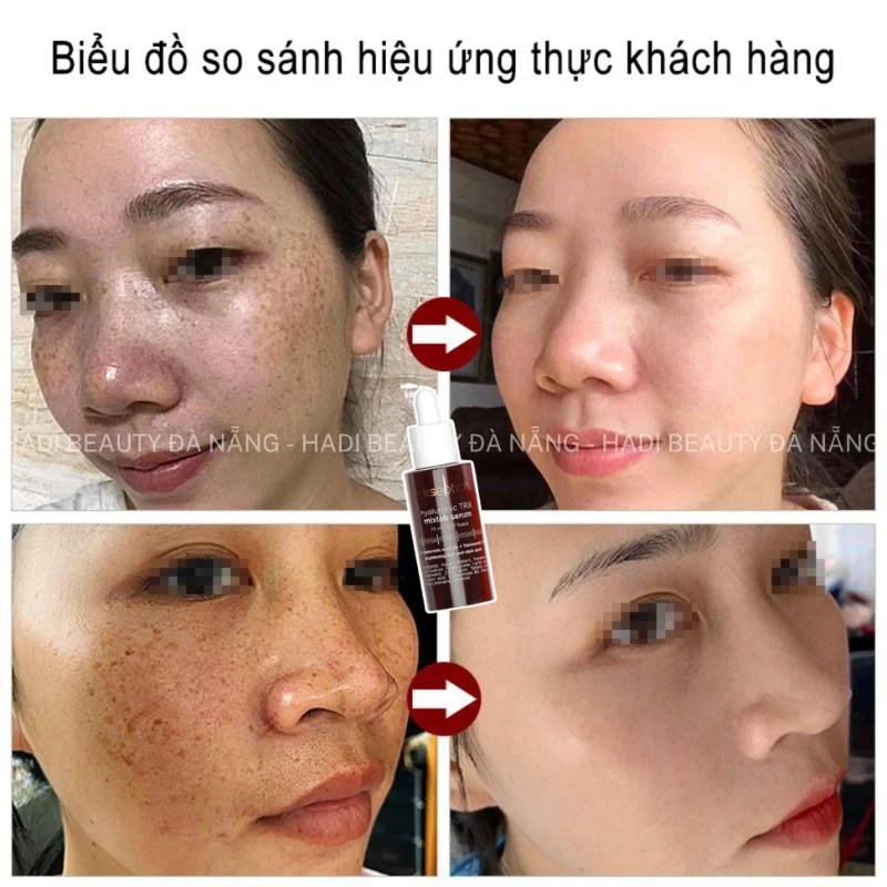 - Cá nhân Hadi thấy thì Tranexamic Acid vẫn là hoạt chất dưỡng trắng dễ chiều nhất, hiệu quả rõ rệt mà lại an toàn, không gây kích ứng. Chỉ sau 8 - 12 tuần sử dụng liên tục, bạn sẽ thấy làn da cải thiện đáng kể. Tình trạng nám, sạm da mờ đi rõ rệt. Các vết thâm mụn cũng dần biến mất, giảm nguy cơ hình thành sẹo mụn tối màu.