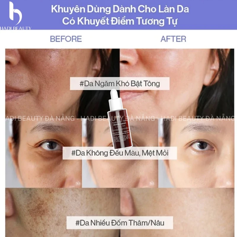 - Phối kết hợp với các hoạt chất đặc trị làm sáng khác.