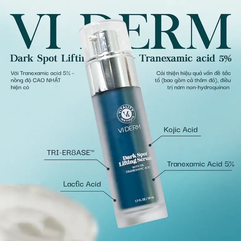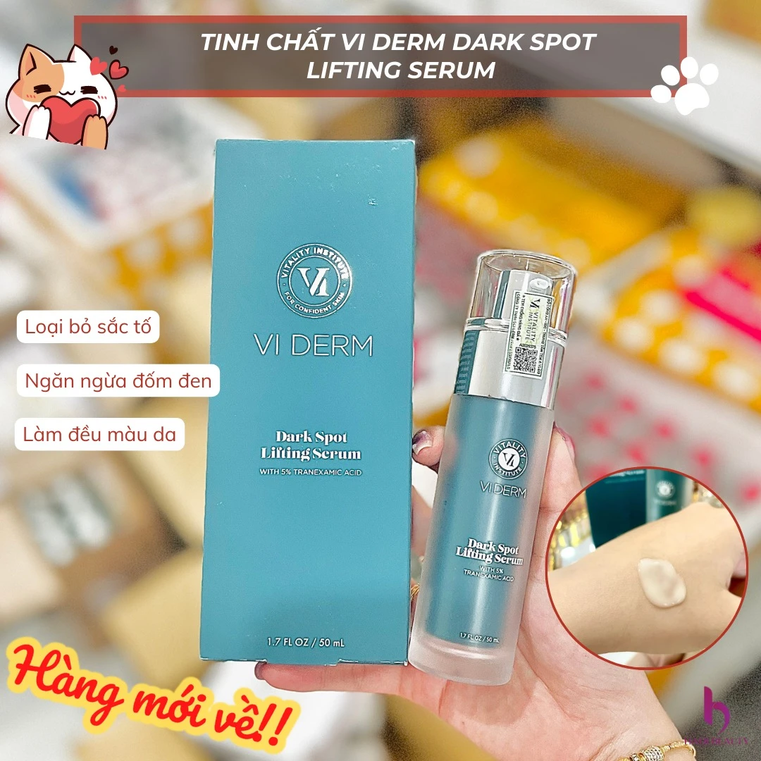 - VI Derm Dark Spot Lifting Serum là một sản phẩm chăm sóc da đột phá với tác dụng mờ thâm nám và dưỡng trắng đều màu da. Được công nhận bởi chuyên gia da liễu và các chuyên gia chăm sóc da hàng đầu, serum này sở hữu công thức tiên tiến và các thành phần tự nhiên độc đáo.