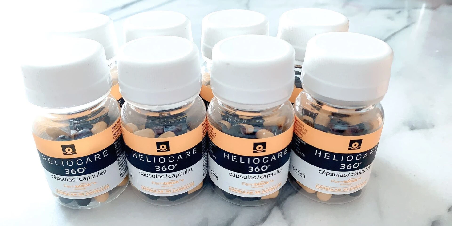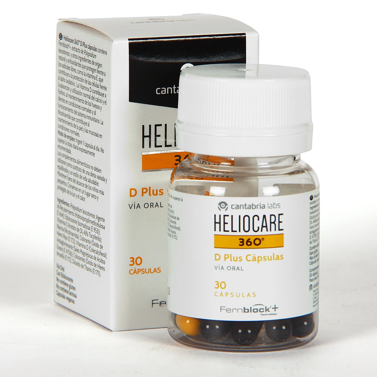Thành phần Fernblock từ cây dương xỉ giúp cơ thể hấp thụ sâu dưỡng chất, chống oxy hóa và cháy nắng, bảo vệ da dưới ánh nắng lâu dài. Đây là hoạt chất chống nắng hữu hiệu của Heliocare. Chúng có khả năng phản xạ tia UV, tăng độ bền biểu bì, khiến da chíu đựng tốt trước các bức xạ từ ánh nắng. Fernblock làm giảm sự mờ đục, ngăn ngừa nám, tàn nhang lên đến 50%. Bề mặt da không bị cháy nắng, sạm màu. Không những thế, viên uống còn bổ sung lượng vitamin C và E – chất chống oxy hóa như một liều thuốc đẹp da, hạn chế khả năng hình thành nám, tàn nhang và các nếp nhăn trên gương mặt bạn.